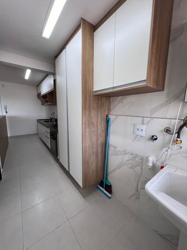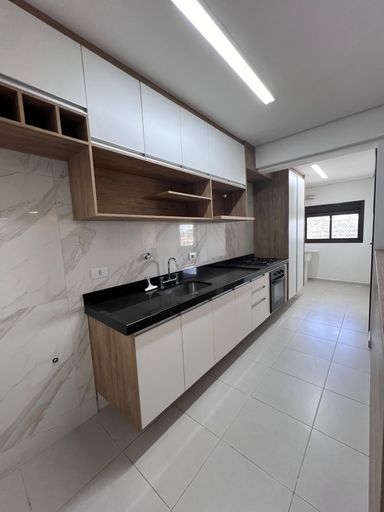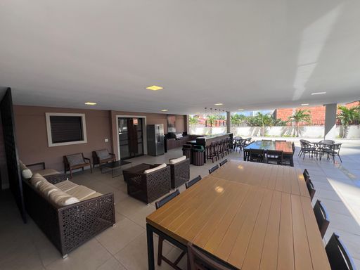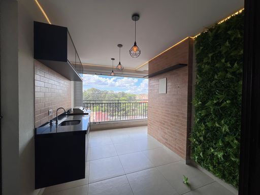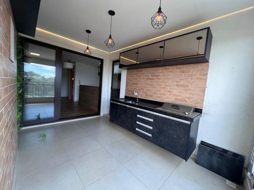 - Varanda gourmet (ESTENDIDA) com churrasqueira a gás, sala de estar, sala de jantar.